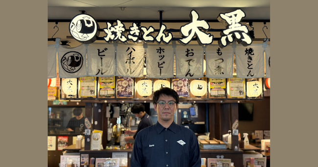 私たち光フードサービスは、名古屋を中心に関東、広島、仙台に立ち飲み居酒屋チェーンを展開しております。「立呑み 焼きとん 大黒」「立呑み 魚椿」というメインブランド、そこから派生した立ち食い寿司、立ち食い焼肉の4業態をメインに出店し、2026年2月現在68店舗を運営しています。私は、新規出店に伴う物件選定や、既存店の売上分析など、経営戦略に携わっています。