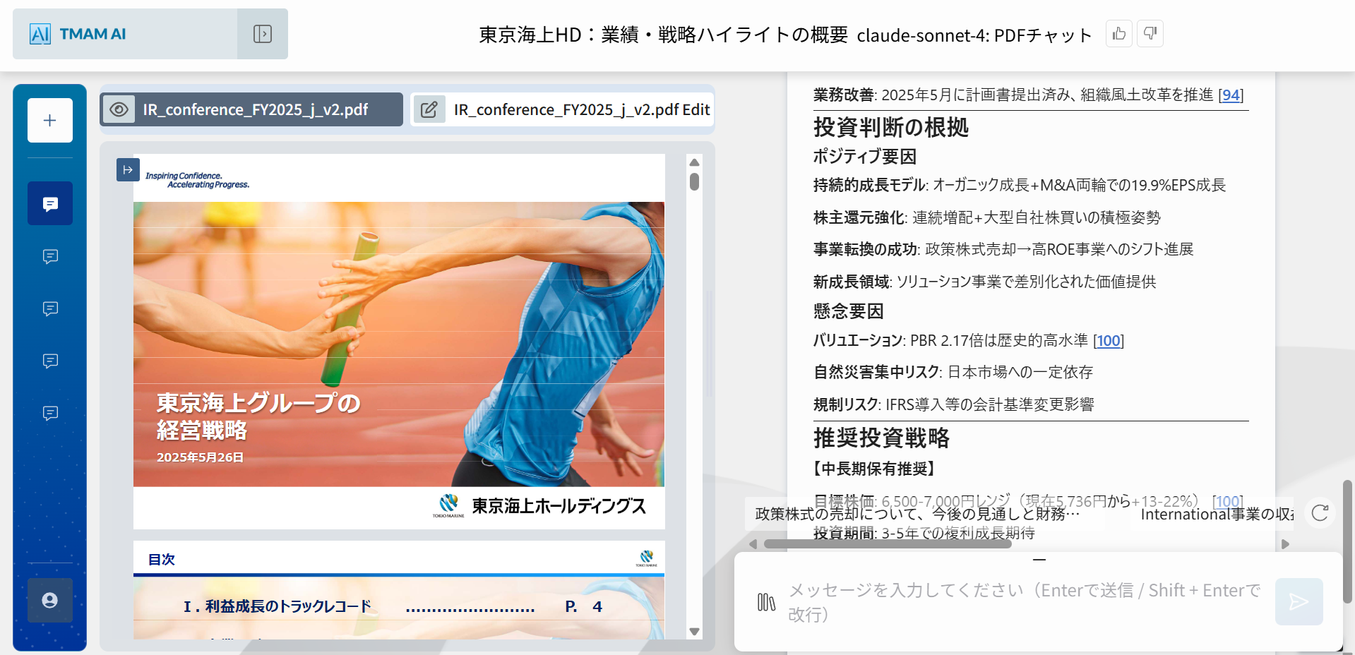 <「TMAM AI」で資料から投資評価の分析をしている画面>